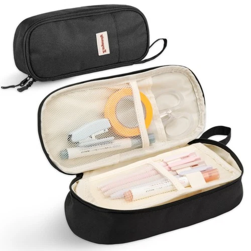 Zzrywuty Large Zipper Pen Case Pencil Pouch for Office Travel Black