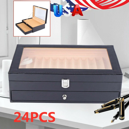 24 Fountain Pen Display Box Holder Leather Storage Collector Organizer Box Gift