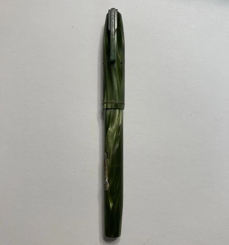 ANTIQUE 1930s WATERMAN’S IDEAL FOUNTAIN PEN 14K GOLD NIB GREEN SWIRL CANADA
