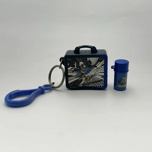DC Comics 1999 keychain with lunchbox & thermos collectible Batman Superman vtg