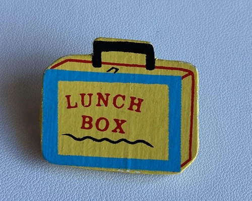 Lunch Box Brooch Pin Yellow Blue School Theme Hand Painted Wooden
