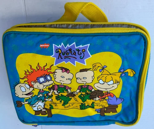 Vintage 1990s Nickelodeon Rugrats Zipper Lunchbox Soft Bag Blue Yellow w/ Toys