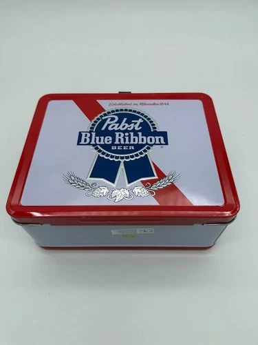 Pabst Blue Ribbon PBR Metal Tin Lunch Box Set With new Mug Thermos Beer Can