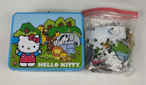 Hello Kitty Zoo Tin Lunch Box w/ handle 2012 Sanrio includes puzzle