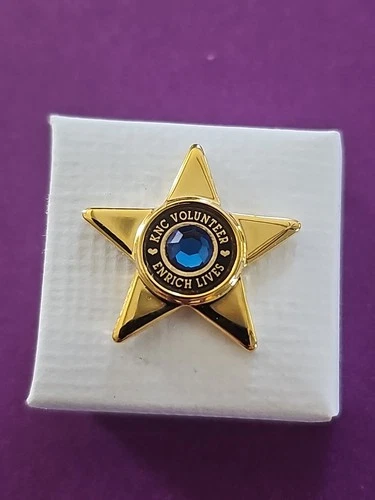 Volunteer Enrich Lives" lapel pin is a gold-toned star-shaped award Collectible