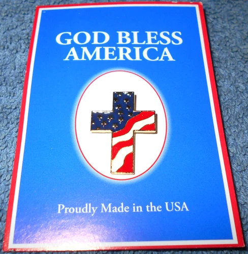 GOD BLESS AMERICA PATRIOTIC AMERICAN FLAG CROSS METAL & ENAMEL LAPEL PIN - NEW