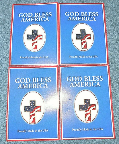 4 - GOD BLESS AMERICA PATRIOTIC AMERICAN FLAG CROSS METAL & ENAMEL LAPEL PINS
