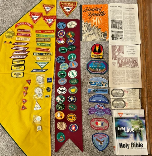 83 Seventh-day Adventist Pathfinder Club Sash , honors, emblems, pins, scarf +++