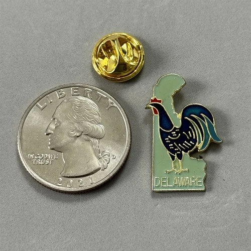 Delaware Blue Hen State Bird Green Enamel Gold Tone Pin Pinback #52482