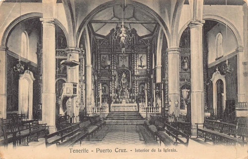 A711 Spain Tenerife Puerto Cruz Interior de la Iglesia Church vintage postcard