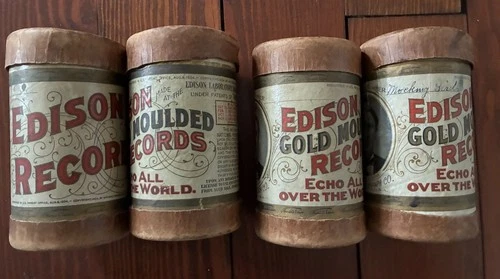Lot of 4 Edison Cylinder Rolls Edison Cylinder Phonograph Records with Lids