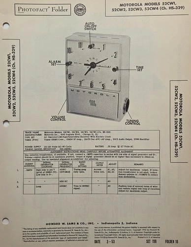 SAMS PHOTOFACT SERVICE MANUAL 198-10 MOTOROLA RADIO 52CW2 52CW3 52CW4 HS-329