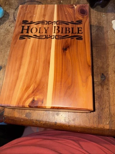 Storage Case / Box Cedar Wood & White Holy Bible King James Cedar Wood 9"x6" Set