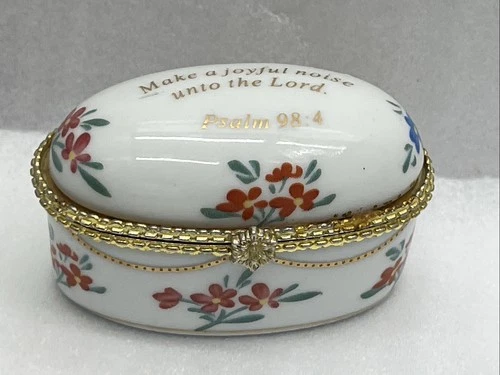 Imperial Porcelain Hinged Religious Inspired Trinket Box - Psalm 98:4