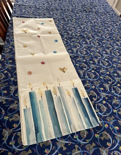 Chanukah Tablecloth 50x68 And Runner 72x13 Menorah And Candle Design So Pretty