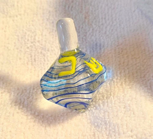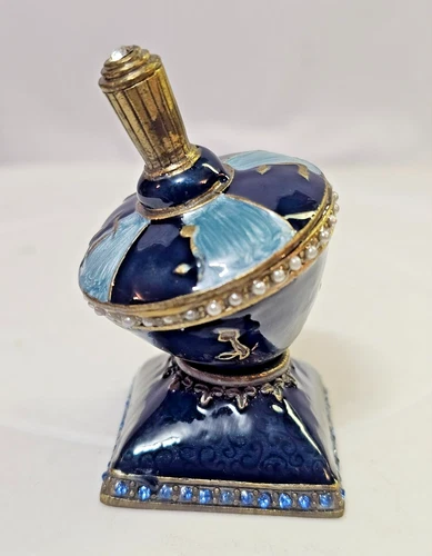Metal Enamel Dreidel w/ Base Faux Pearl Blue Stones Decorative Jewish Israel-B4