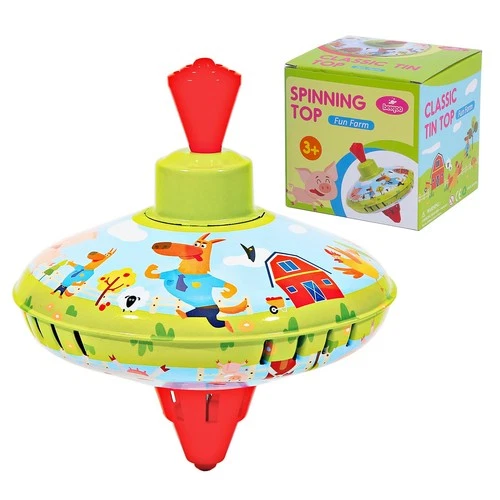 Beeqoo Fun Farm Spinning Top Tin Toy for Kids – Retro Mini, Multicolor