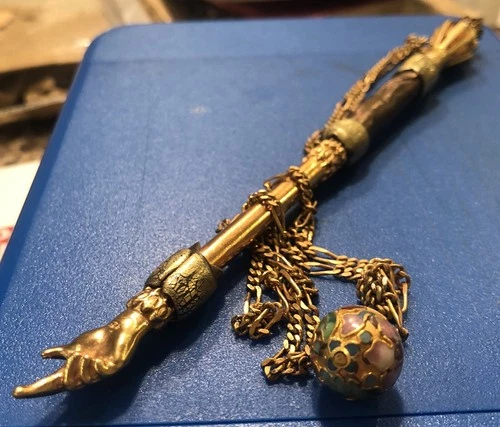 925 Sterling Silver Torah Pointer Yad w Gold Vermeil Cloisonné Ball 60 Grams 7"