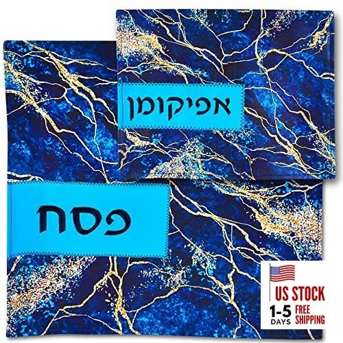 Passover Seder Modern Faux Leather Matzo Cover and Afikoman Holder Blue Marble