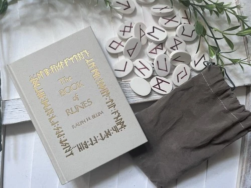 The Book of Runes by Ralph H. Blum with Rune Stones & Pouch Wicca Paganism