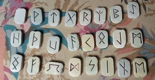 RUNES ELDER FUKHART SET OF 24 + 1 BLANK VINTAGE SILK BAG INCLUDED FREE SHIPPING