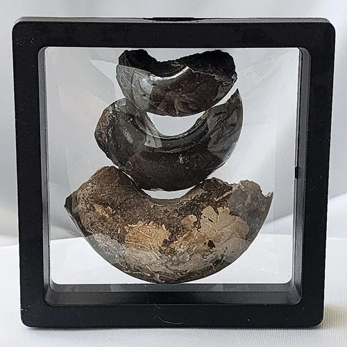 Fossilized Stone 2" Slice Polished Rock Specimen Display Decor Brown Black