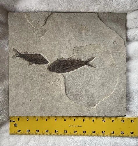 Bony Fish Fossil Slab with Two Specimens, Approx. 12x10x1 Inches