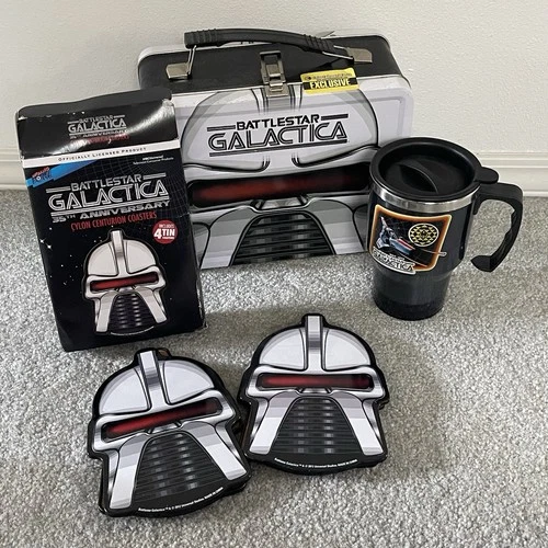 Battlestar Galactica 35th Anniversary Metal Tote, Cylon Coasters & Travel Mug