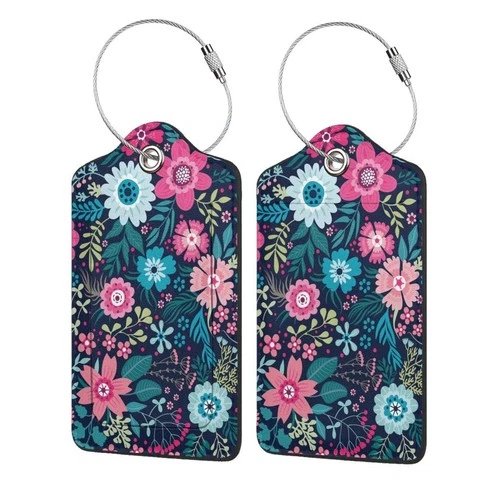2 Pack Flower Pink Floral Luggage Tags Travel PU Cute Leather Luggage Tag Nam...