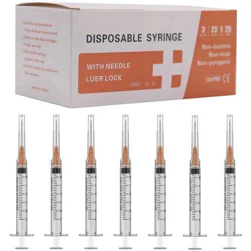 25 Gauge 1 inch Needle with Syringe(30 Pack) , 3ml Luer Lock 25G /1inch