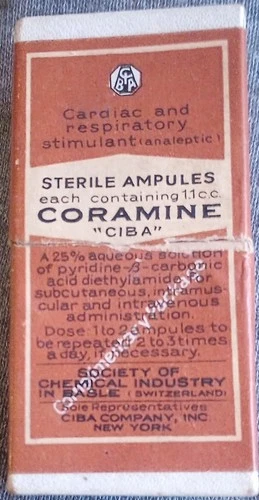 1930's-40's Coramine "Ciba" Original Box One Ampoule Included From Switzerland
