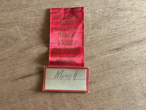 Illinois State Medical Society Pin Ribbon 104th Annual Meeting 1944 Vtg MUNCH