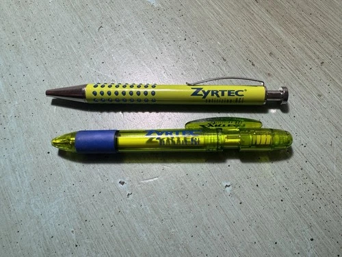 ZYRTEC PEN LOT (2 pens) Blue & Lime Green, Metal Ball Point-Pharmaceutical Promo