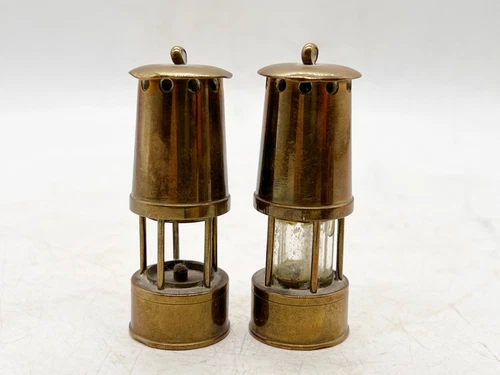VINTAGE / ANTIQUE MINIATURE BRASS MINERS MINING LAMP LIGHT AND ONE OTHER