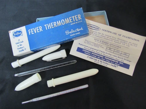 Vintage 1950s?? Oral / Rectal Fever Thermometer with Case + Box-- 'READ'