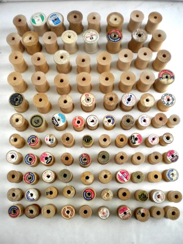 100 Empty All Wooden Thread Spools - 34 Large and 66 Medium & Small