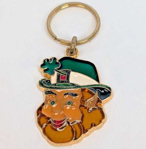 Vintage Irish Lucky Charm Keychain Shamrock Leprechaun St Patty's Day Keyring