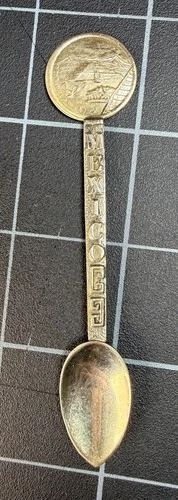 Vintage Mexican Souvenir Spoon - Alpaca Metal Marked with Mountain Medallion Top