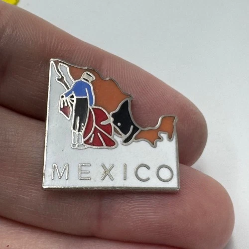 Vintage Mexico Bullfighter Map Scene Lapel Pin Souvenir Travel Tourist