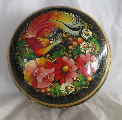 Vintage Wood Souvenir Plate Russia Soviet Union Black Tooth Pattern BTK 4 3/8”