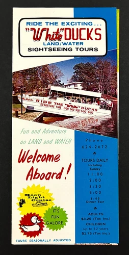 1960s White Ducks Land Water Tours Lake Hamilton AR Vintage Travel Brochure Map
