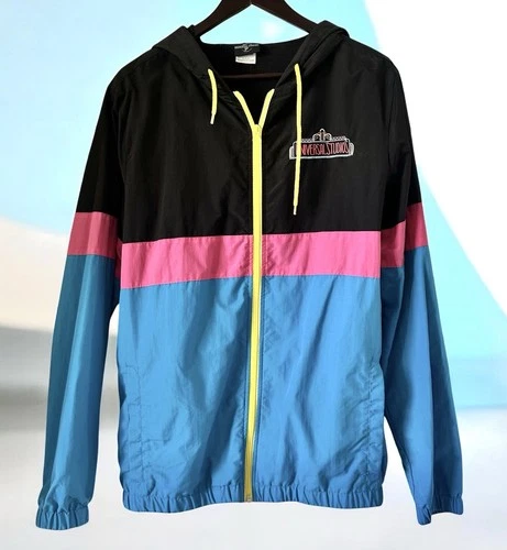 VTG 90s Embroidered Universal Studios Hooded Windbreaker Unisex MED Pink/Blue