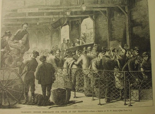1882 - Searching CHINESE IMMIGRANTS for opium, at SAN FRANCISCO - wily Chinamen!