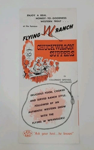 Vintage 1950's Flying W Ranch, Colorado Springs, Chuckwagon Suppers - Brochure