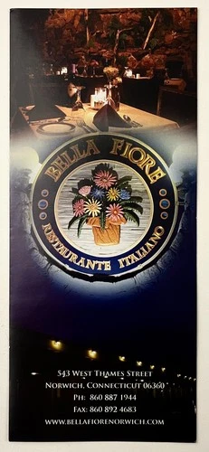 2000s Norwich Connecticut CT Bella Fiore Restaurant Menu Vintage Travel Brochure