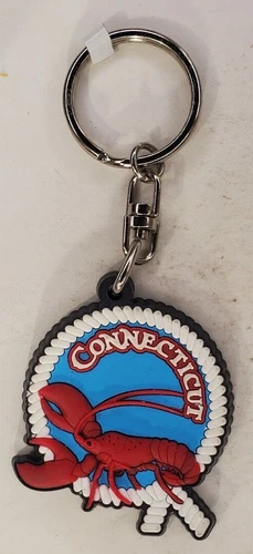 Vintage Connecticut Lobster Vinyl Keychain Keyring by The Post Card Factory