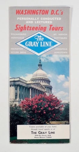 1960s Gray Line Washington DC Sightseeing Tours Fold Out Brochure