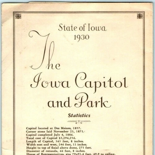 RARE 1930 Bi Fold Brochure State of Iowa Capitol & Park Tourist Info Pamphlet 1F