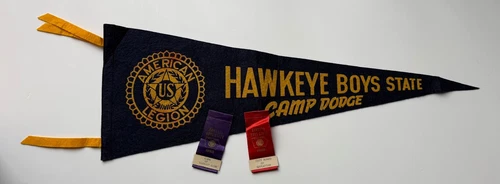 Scarce 1963 Hawkeye Boys State CAMP DODGE Pennant & Ribbons Iowa American Legion