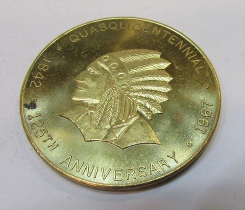 Vintage 1967 Quasqueton IA Iowa Quasquincentennial 125th Anniversary Medal Chief
